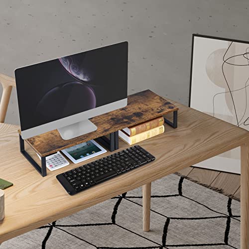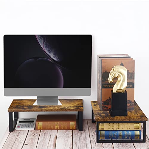 YBING - حامل شاشة للمكتب منظم الكمبيوتر من قطعتين كمبيوتر مكتبي خشبي لابتوب لجهاز اي ماك 39.8 سم طول × 24.8 عرض 11.9 ارتفاع بني