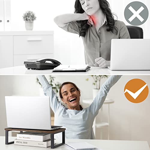 - 【هيكل قوي】حامل شاشة الكمبيوتر مصنوع من لوح خشب ليفي متوسط الكثافة سميك وأرجل معدنية متينة لتوفير دعم قوي لشاشتك بسعة حمل قصوى تصل إلى 60 باوند. سهل التركيب، يمكنك أيضًا تكديسه