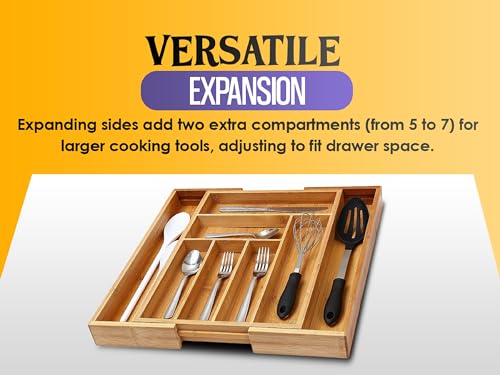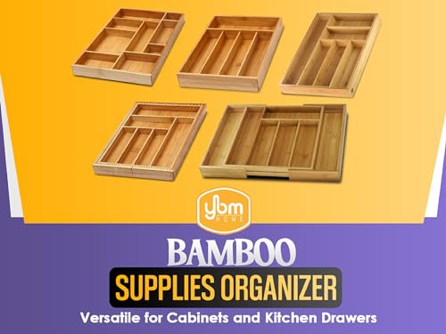 YBM HOME - صينية أدوات مائدة من البامبو لتنظيم أدوات المائدة الفضية مع 5 مساحات تخزين 338 من واي بي ام هوم