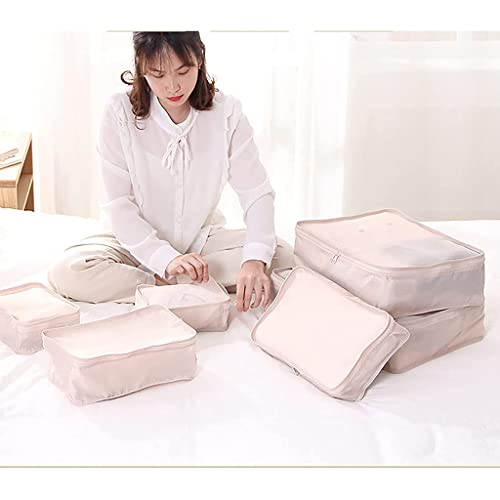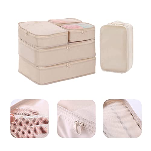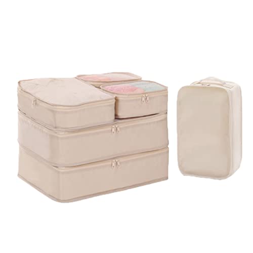 YBYWL - منظم شنط السفر من واي بي واي دبليو ال، مجموعة من 6 مكعبات تعبئة لحقائب السفر، منظمات سفر خفيفة الوزن مع شنطة أحذية لاكسسوارات السفر(اللون: بيج)