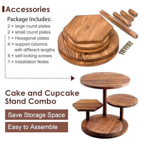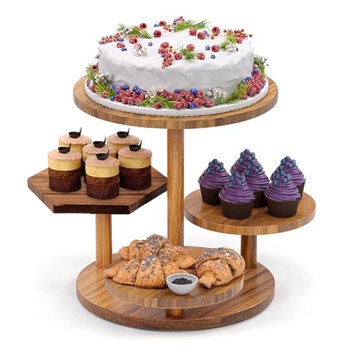 - 【جودة عالية ومتينة】خشب مختار عالي الجودة، حامل عرض الكعك الخاص بنا قوي ومتين، ليس من السهل كسره، مع أداء حمل ممتاز. بعد معالجة التلميع الدقيقة، يكون سطح صينية الكيك رقيقًا ومريحًا مع لمعان طبيعي، مما يظهر ملمسًا راقيًا.