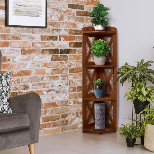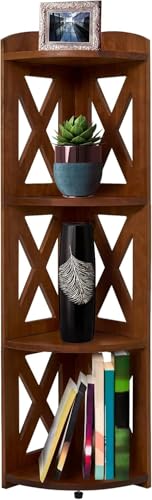 YCICI - حامل ارفف زاوية من واي سي اي سي، رف كتب زاوية، ارفف زاوية صغيرة من الخشب الطبيعي، حامل نباتات، خزانة كتب زاوية لغرفة المعيشة، مكتب المنزل، غرفة النوم، (بني، 4 طبقات X)