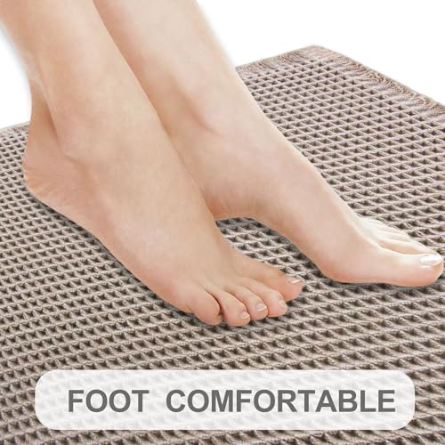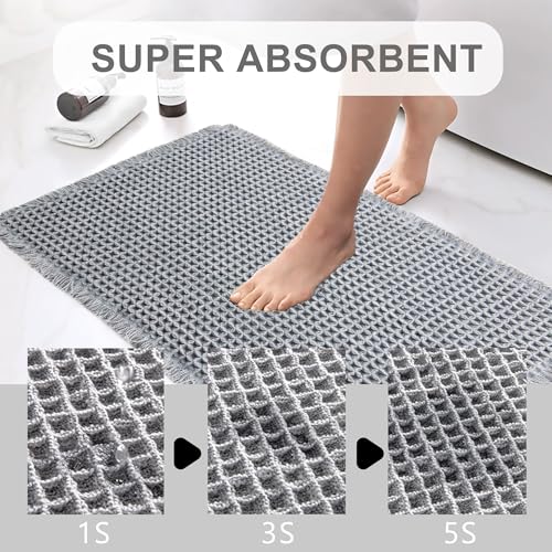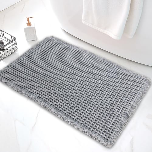 YCT - سجادة حمام بتصميم وافل قابلة للغسل في الغسالة، سجادة حمام فائقة الامتصاص ومضادة للانزلاق لأرضية الحمام من واي سي تي، لون رمادي فاتح، مقاس 43 × 61 سم