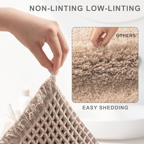 - سجادة حمام عالية الامتصاص: يمتص نسيج الوافل الموجود على سجادة الحمام الماء والرطوبة من قدميك عند الخروج من الحمام أو حوض الاستحمام. لا يعزز اصميم الوافل امتصاص الماء فحسب، بل يزيد أيضًا من دوران الهواء ويساعد في عملية التجفيف.