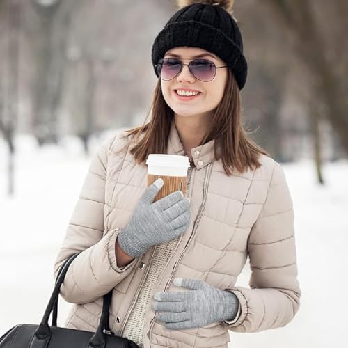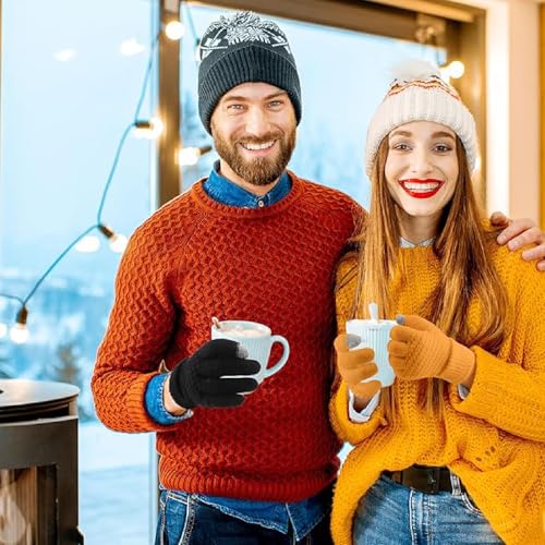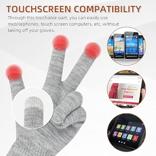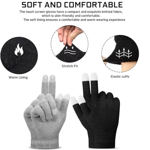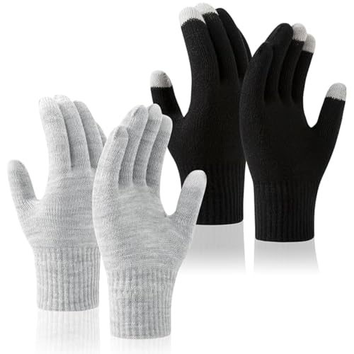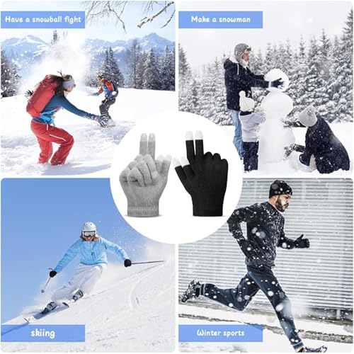 YCZARD - زوجان من قفازات الشتاء المحبوكة السحرية التي تعمل باللمس من واي سي زارد، قفازات حرارية للتدفئة في الشتاء للرجال والنساء، قفازات مضادة للانزلاق للقيادة في الهواء الطلق، أسود/رمادي، مقاس واحد