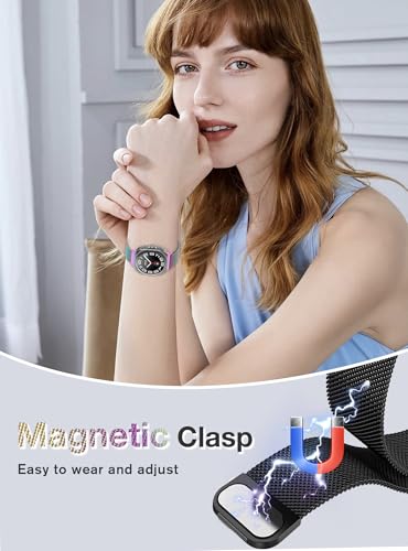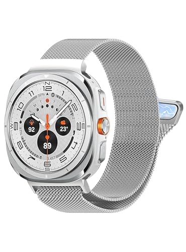 Yeahxing - سوار ميلانيز من ياهكسينج لساعة سامسونج جالاكسي 7 الترا 47 ملم - سوار معدني مغناطيسي من الستانلس ستيل لساعة جالكسي 7 الترا 47 ملم 2024، سوار بديل بحلقة شبكية للرجال والنساء، جيد التهوية، متين