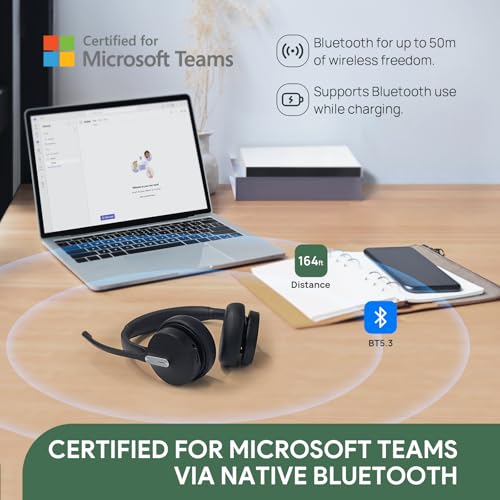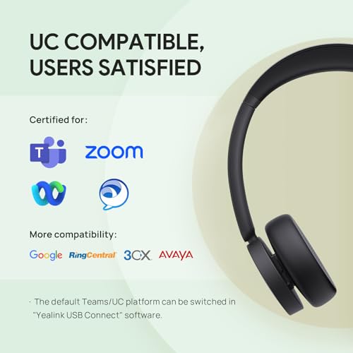 Yealink - سماعة رأس لاسلكية مزدوجة BH70 مع ميكروفون للعمل من يالينك بلوتوث شهادة وقت تحدث يصل إلى 35 ساعة 147 جرام راحة ارتداء طوال اليوم مثالية والمكتب المفتوح USB-A على الأذن أسود
