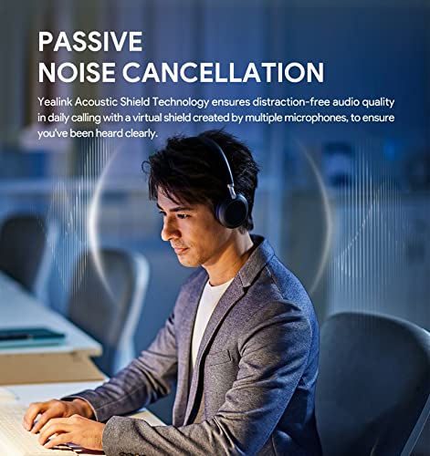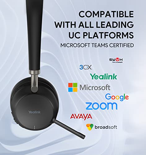 Yealink - سماعة رأس لاسلكية مع حامل شحن لاسلكي وسماعات رأس ميكروفون من يالينك، موديل BH72