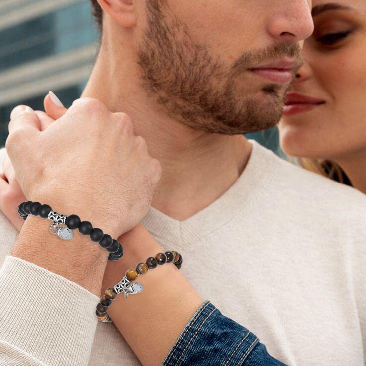 Yean - يين سوار زوجين من الخرز المضفر اساور مغناطيسية لجذب العلاقات مجوهرات للنساء والرجال حجر عين النمر + بلوري
