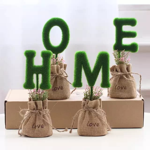 Year - نباتات صناعية بتصميم حروف لديكور المنزل وغرفة المعيشة، متعدد الألوان
