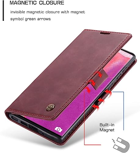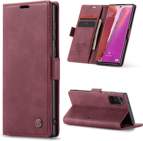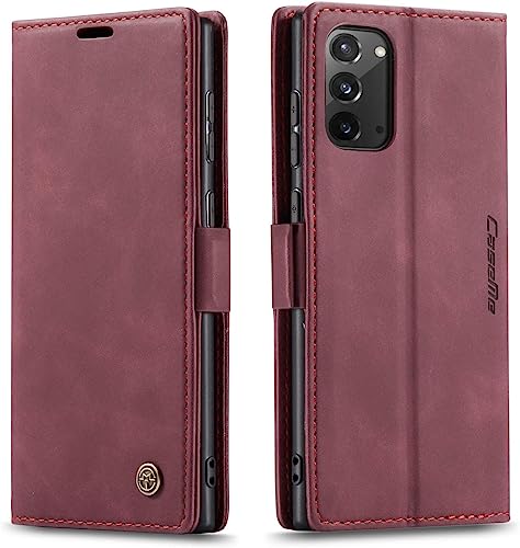 Year - جراب حماية قلاب مغناطيسي مصنوع من جلد صناعي فاخر بفتحة بطاقات وحامل عملي متوافق مع موبايل سامسونج جالاكسي نوت 20 (بلون احمر)