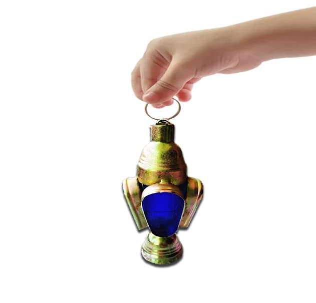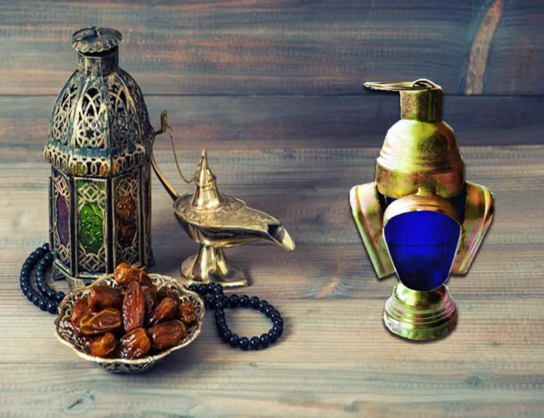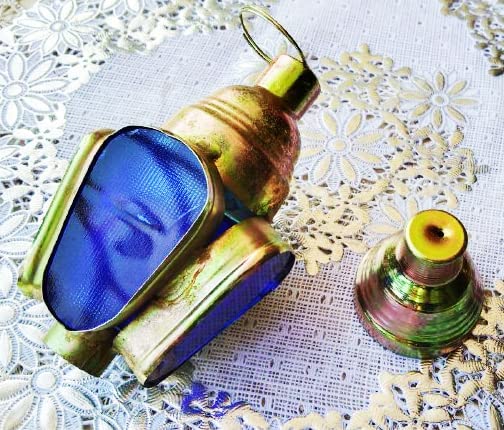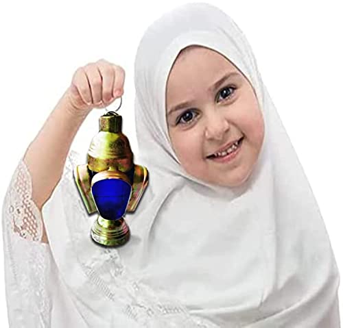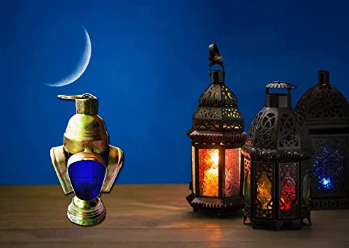 Year - فانوس رمضان صغير مصنوع يدويا من المعدن المشمع - 6 سم × 7 سم (زجاج ازرق)