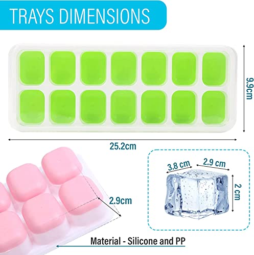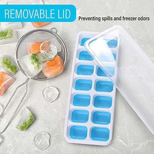 Year - صينية مكعبات ثلج من السيليكون سهلة الفك ومرنة من يير، 14 مكعب ثلج بغطاء مقاوم للانسكاب وقابلة للتكديس مع غطاء للفريزر والكوكتيل (عشوائي، 1)