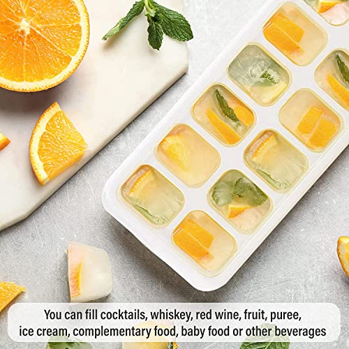 - سهلة الاستخدام: مواد آمنة تشكل الجزء السفلي جيداً، مما يجعل من السهل إطلاق مكعبات الثلج فقط بلفة واحدة. املأ الشرائح بالماء وقم بتغطية الغطاء ثم ضع الشرائح في المجمد. بالإضافة إلى الماء، يمكنك ملء قالب مكعبات الثلج بالفاكهة والآيس كريم والصودا والنبيذ لتخصيص نكهتك المفضلة.