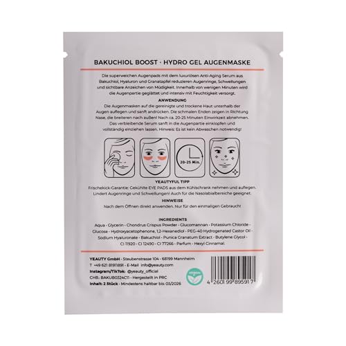 Yeauty - وسادات بتصميم عين باكوشيول قابلة لإعادة الشحن من ياوتي، وسادات عيون فائقة النعومة مع سيروم مضاد للشيخوخة تقلل من الخطوط الدقيقة والتجاعيد وتنعم بشرة منطقة العين للترطيب المكثف، زوج واحد