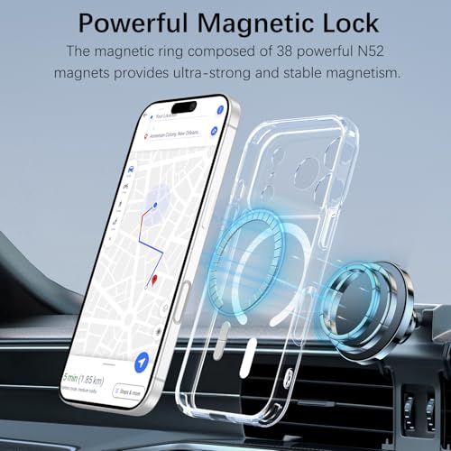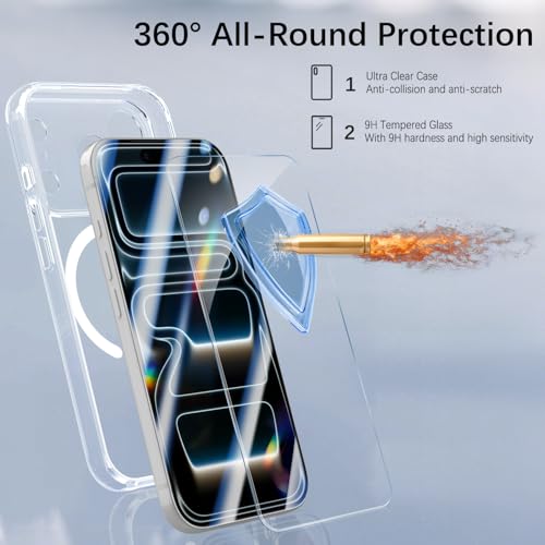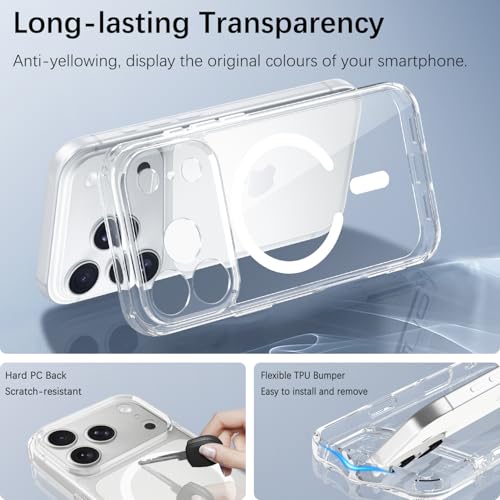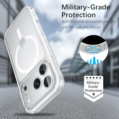 YeaVoic - جراب مغناطيسي لموبايل ايفون 17 برو من يافويك، غطاء ايفون 17 برو مع قطعتين من الزجاج المقوى متوافق مع ماج سيف، جراب مضاد للصدمات من الدرجة العسكرية، شفاف