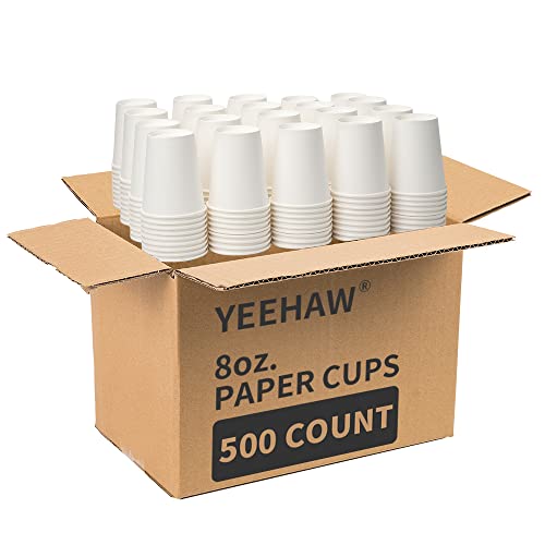 YEEHAW - اكواب قهوة ورقية للاستعمال مرة واحدة سعة 8 اونصة من 500 قطعة، بيضاء اونصة، للذهاب للشاي والقهوة بالماء الساخن/البارد والمشروبات الاخرى، مثالية للمقاهي والحانات الصغيرة والشركات، ييهاو، الورق .
