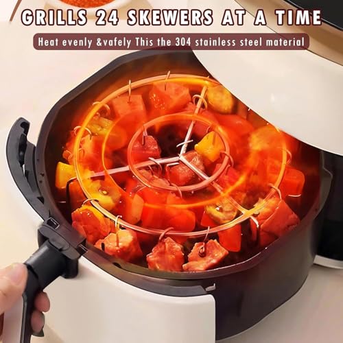 YelaJoy - رفوف قلاية هوائية مستديرة وحامل أسياخ من الفولاذ المقاوم للصدأ مع 24 سيخ للاستخدام المتعدد لشواء الكباب من يلا جوي، مقاس 15.24 سم، مكون من قطعتين