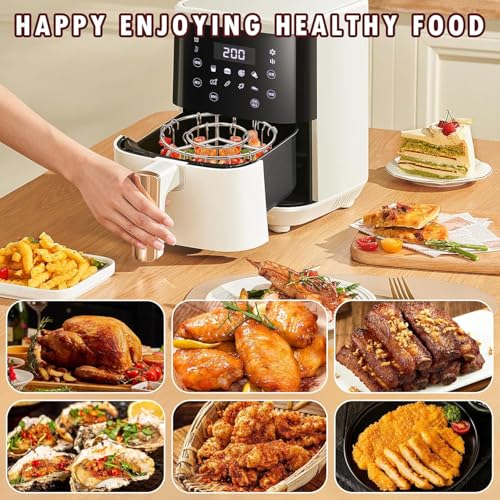 - ✨️【فولاذ مقاوم للصدأ آمن للطعام】رف القلاية الهوائية مصنوع من فولاذ مقاوم للصدأ من نوع 304 آمن للطعام، مما يضمن خلوه من أي مواد ضارة، لتستمتع بالطبخ براحة بال. لا يقتصر استخدامه على تحمل درجات الحرارة العالية أثناء الطهي فحسب، بل يتميز أيضًا بمقاومته الممتازة للصدأ والانحناء والتشوه.