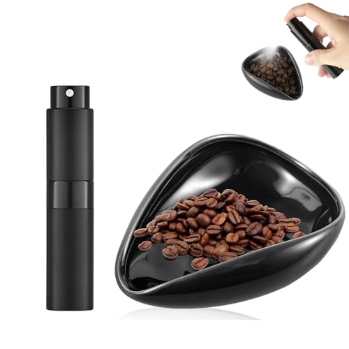 YelaJoy - طقم كوب جرعات حبوب القهوة وزجاجة بخاخ للاسبريسو من يلا جوي، ملحقات بار القهوة، صينية جرعات واحدة من السيراميك للقهوة او الشاي، بخاخ لتقليل قوة القهوة الساكنة (اسود)