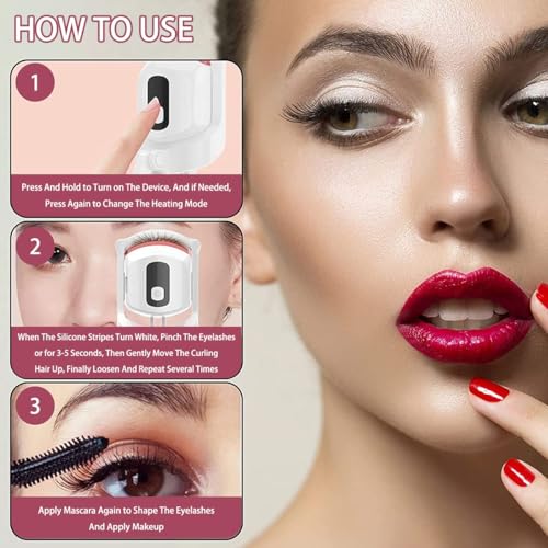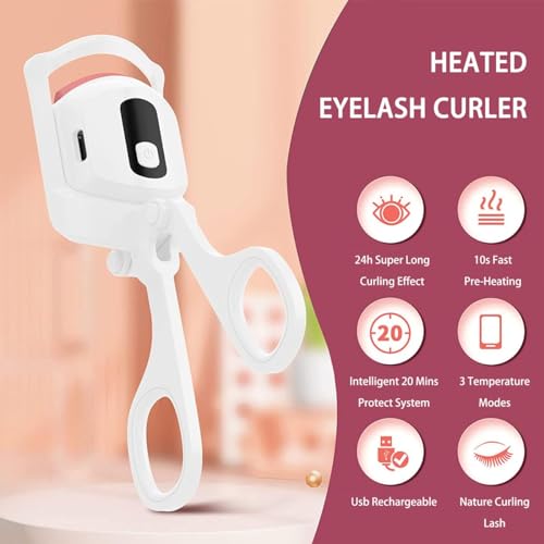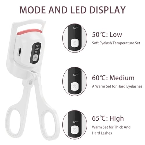 YelaJoy - أداة كهربائية للف الرموش للنساء قابلة لإعادة الشحن بمنفذ USB من يلا جوي، أداة تجعيد الرموش الطبيعية مع 3 أوضاع حرارة وشاشة LCD لملحقات المكياج، لرموش مجعدة تدوم طويلا (لون أبيض)