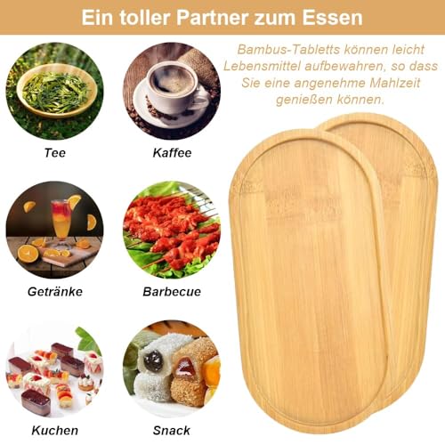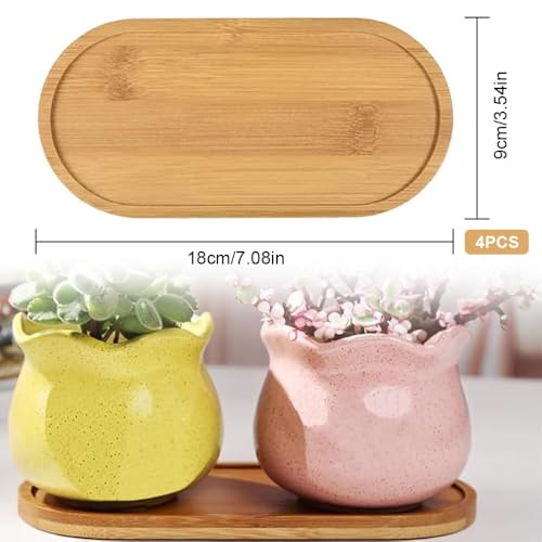 YelaJoy - صينية بيضاوية من يلا جوي، صينية بامبو لاصيص الزهور العصارية، قاعدة اكواب من الخيزران لمعظم النباتات الداخلية والخارجية المصنوعة من السيراميك (17.5 × 8.8 سم) (6 قطع)