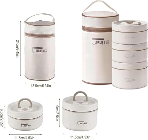 YelaJoy - حاويات غداء محمولة مع حقيبة من يلا جوي، حاوية غداء منفصلة قابلة للتكديس من الستانلس ستيل، مانعة للتسرب وقابلة للتكديس، للبالغين من الرجال والنساء والاطفال، صناديق بينتو معزولة (بيج، 3 طبقات)