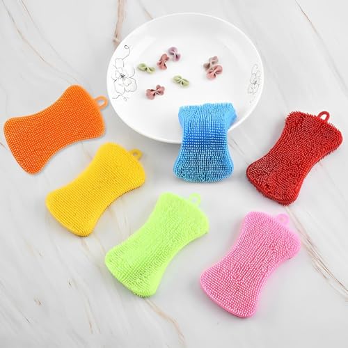 YelaJoy - إسفنجة سيليكون لغسل الأطباق من يلا جوي، 6 قطع من فرش غسل الأطباق المصنوعة من السيليكون، فرش تنظيف متعددة الوظائف لغسل الخضروات والفواكه والأطباق والأواني