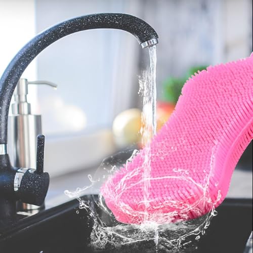 - ❤️【آمنة للاستخدام】- لن تمتص الإسفنجات مزدوجة الوجهين الماء؛ خالية من العفن، تحسن نظافة المطبخ الصحية. يمكن أن تساعدك شعيرات السيليكون المرنة والناعمة على الوصول إلى زوايا الأشياء غير المنتظمة بسهولة.