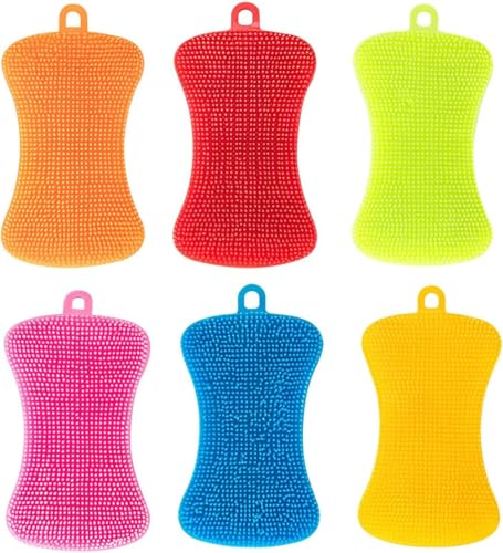 - ❤️【محتويات العبوة】- تأتي كل عبوة مع 6 قطع من إسفنجات التنظيف المصنوعة من السيليكون. لون عشوائي باللون الأزرق/الأخضر/الأصفر/الوردي/الأحمر/الأرجواني. الأبعاد 12.5 × 7 سم.