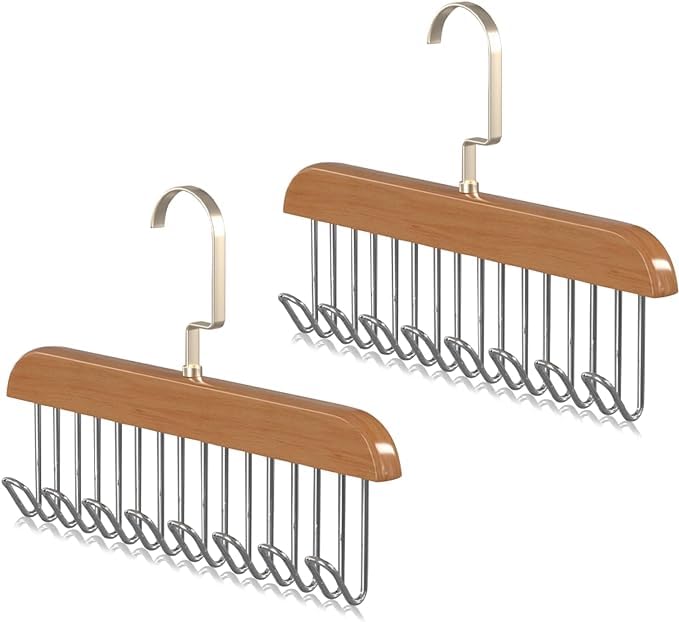 YelaJoy - شماعة معاطف دوارة من الخشب المحبب بـ8 خطافات من يلا جوي مكونة من قطعتين، منظم رف القبعات، دوران حر 360 درجة، استخدام فعال للمساحة للقبعات الصغيرة والقمصان القصيرة والاحزمة والاوشحة