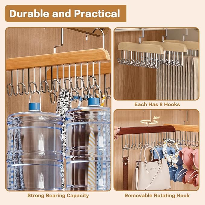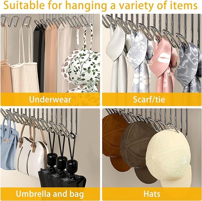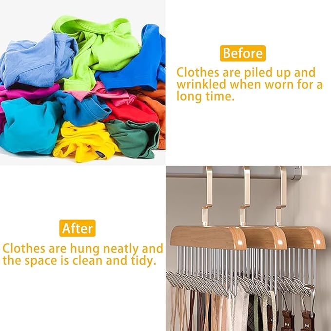 - 【ثمانية خطافات متعددة الوظائف】- كل شماعة مجهزة بثمانية خطافات، والتي يمكنها تعليق العديد من الملابس في نفس الوقت، مثل القمصان والسراويل وربطات العنق والأوشحة وما إلى ذلك، للحفاظ على خزانة ملابسك منظمة.