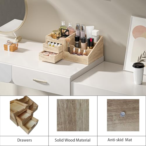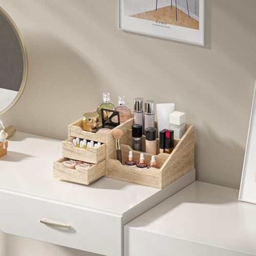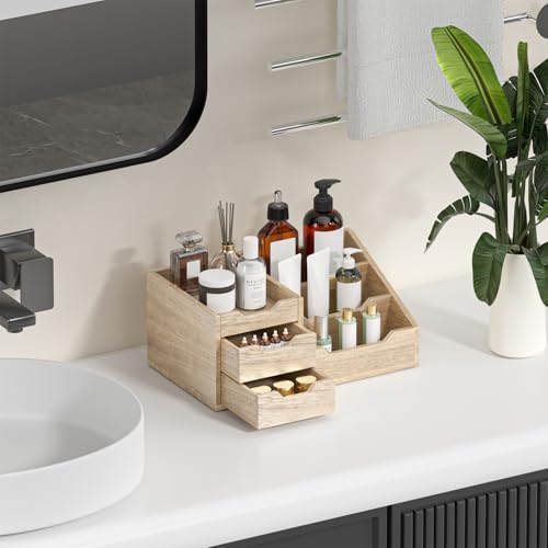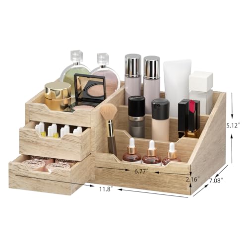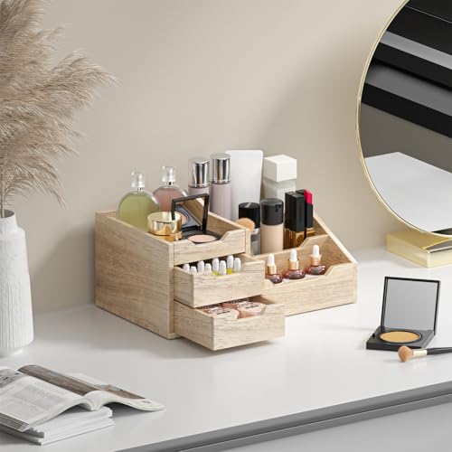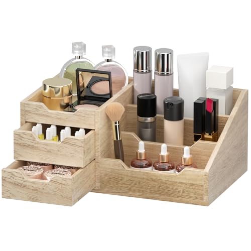 Yelinkws - منظم مكياج مع أدراج لمستحضرات التجميل، تخزين المكياج للحمام ودولاب الملابس، منظم منضدة الحمام للكولونيا والعطور والعناية بالبشرة - بني من يلينكوز