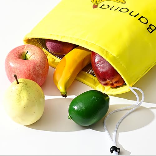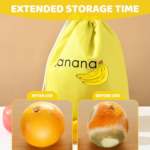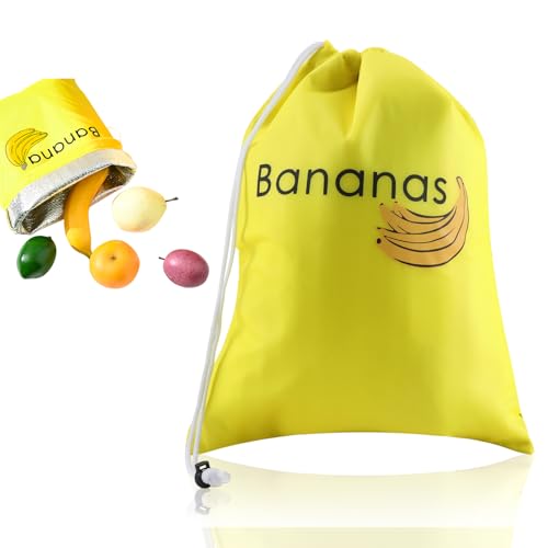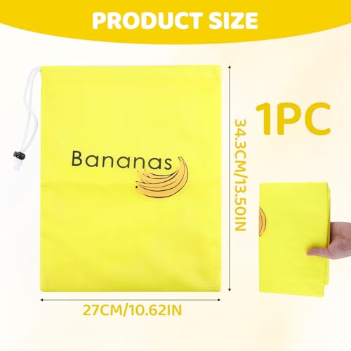WrteEase - شنطة تخزين بتصميم موز اصفر للثلاجة، 35 سم × 28 سم، شنطة برباط للحفاظ على فاكهة الموز والخضروات طازجة لفترة اطول، قابلة لاعادة الاستخدام، مقاومة للصدمات، مقاومة للروائح، للثلاجة والمطبخ والنزهات