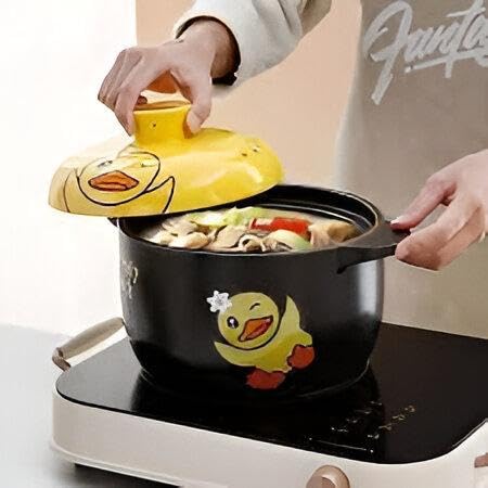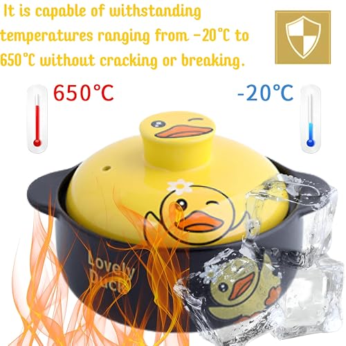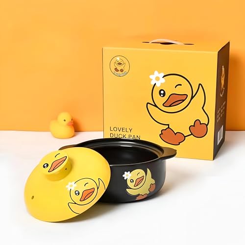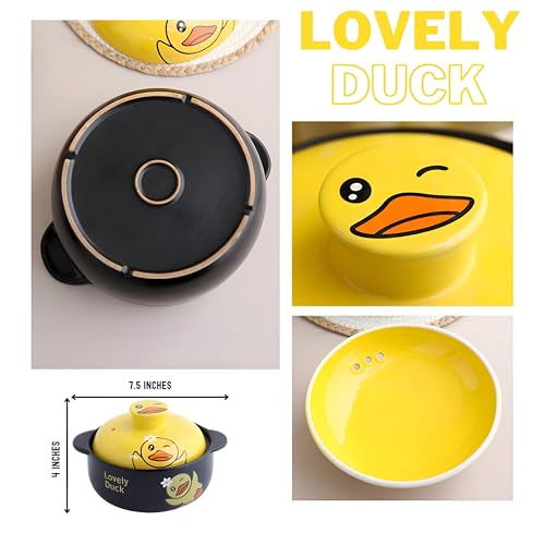 Generic - طاجن أصفر - قم بتحويل تجربة تناول الطعام الخاصة بك مع طاجن سيراميك أصفر كوري فاخر على شكل بطة كرتونية، مثالي للطبق الساخن، ودولسوت بيبيمباب، والحساء لـ2-3 أشخاص.