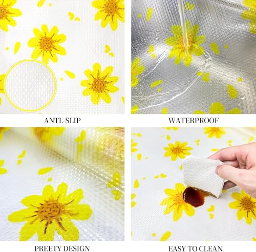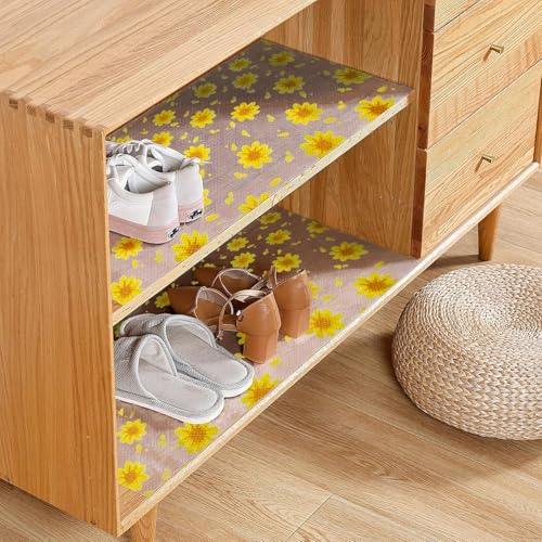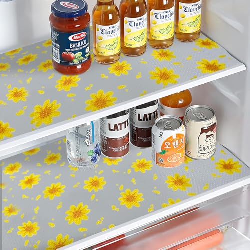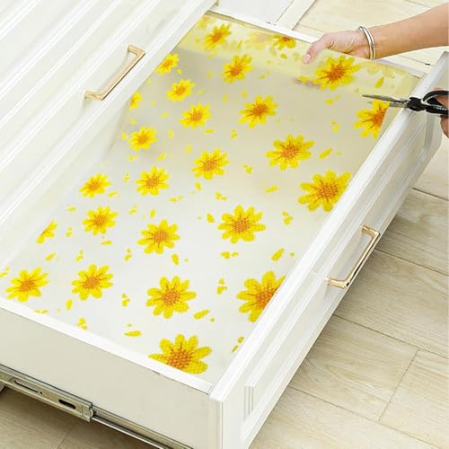 Generic - بطانة رف زهور صفراء لخزائن المطبخ، بطانة أدراج غير لاصقة، بطانة ثلاجة غير قابلة للانزلاق، وسادة ثلاجة مقاومة للماء، حصيرة خزانة، مفارش طاولة سهلة