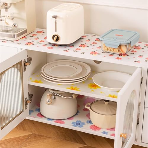 - 【سهلة التركيب】: بطانة خزانة المطبخ مريحة للغاية في الاستخدام، يمكنك بسهولة قص الحجم الذي تحتاجه باستخدام المقص أو صنعها بنفسك إلى أنماط وأحجام مختلفة تريدها، ليس فقط لحماية الخزانة أو الدرج أو سطح الطاولة، بل يمكن أيضًا تزيين منزلك.