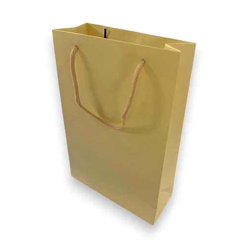 Generic - أكياس هدايا ورقية مغلفة باللون الأصفر متوفرة بمقاسين بوزن 300 جرام لكل متر مربع، كبيرة الحجم L من 6 قطع