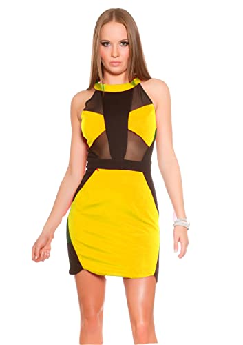 Generic - فستان لانجيري اصفر مزدان ببتلات سوداء مثيرة نساء