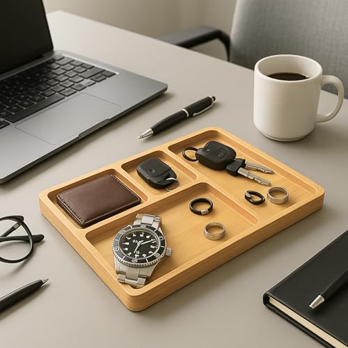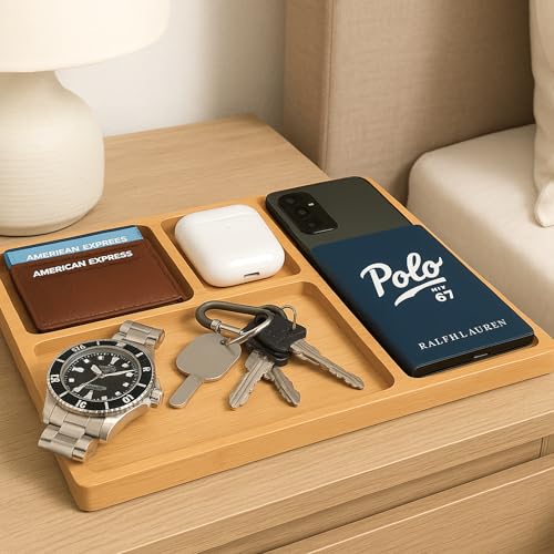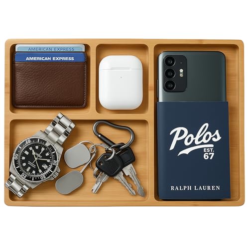 YELLOW LOTUS - صينية من خشب البامبو، منظم خشب للرجال للخزانة ودرج الملابس بجانب السريرللمفاتيح والمحفظة والموبايل والساعات والمجوهرات من يالو لوتس، بني