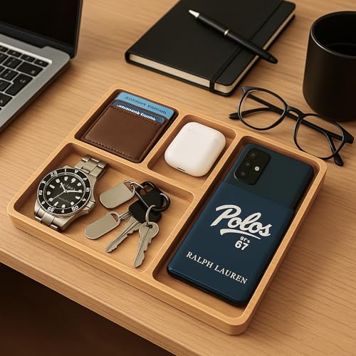 - صواني صغيرة للتنظيم - قل وداعًا للضروريات في غير مكانها! تحافظ الصواني الصغيرة الخاصة بنا للرجال على مفاتيحك ومحفظتك وهاتفك وساعتك منظمة. مثالية للمنضدة الليلية والمداخل والمكاتب، يمكن استخدام هذه الصينية الرجالية القابلة للتجميع كصينية تنظيم مكتب صغيرة أو منظم صينية للرجال لطاولة الزينة للحصول على مساحة خالية من الفوضى.
