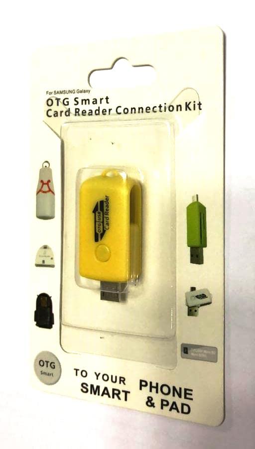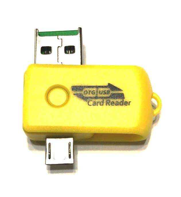 Generic - محول Micro الى USB او تي جي مع قارئ كارت ذاكرة - مدخل V8 ومخرج لون اصفر عدد المنافذ: 4