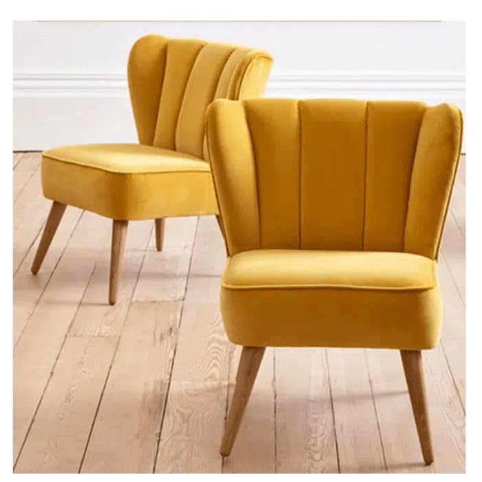 Generic - كرسي اثاث منجد عصري بدون اذرع بلون اصفر، خشب زان