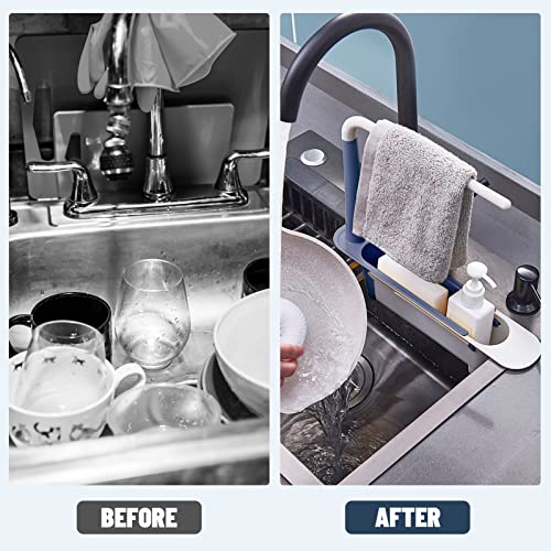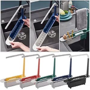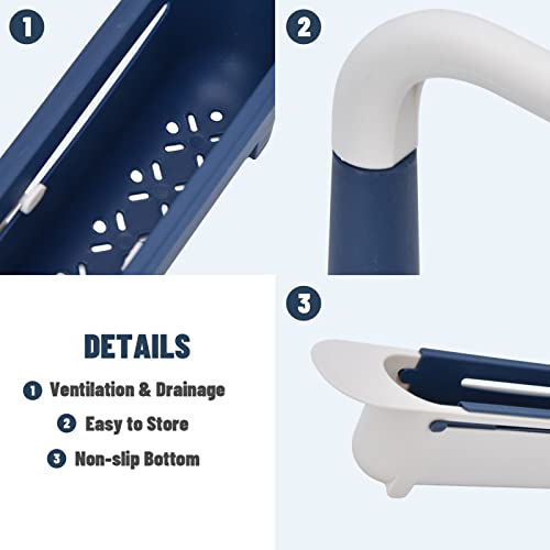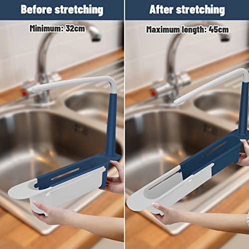 YEmirth - رف تخزين تلسكوبي للحوض، سلة تصريف تخزين قابلة للتمدد، طول قابل للتعديل بحرية، سعة كبيرة، منظم حوض قابل للتمدد (ازرق)، من واي ايميرث، البولي بروبلين