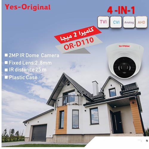 Generic - Yes-Original كاميرا مراقبة قبة داخلية، دقة ٢ ميجابكسل، عدسة ثابتة ٢.٨ مم، ، متوافقة مع ٤ أنظمة TVI/CVI/AHD/Analog، OR-D110