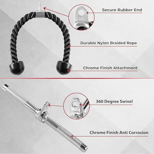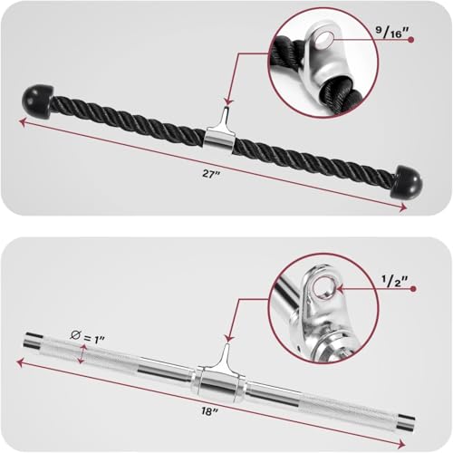 - حبل تمارين العضلة ثلاثية الرؤوس مقاس 68.5 سم يمكن ربط الحبل المضفر بالنايلون مع ملحق مطلي بالكروم شديد التحمل بأي نظام صالة ألعاب رياضية عالمي للتدريبات المتعددة. تساعد المكعبات المطاطية الكبيرة في نهاية الحبل على منع الانزلاق وزيادة الفعالية في الاستخدام
