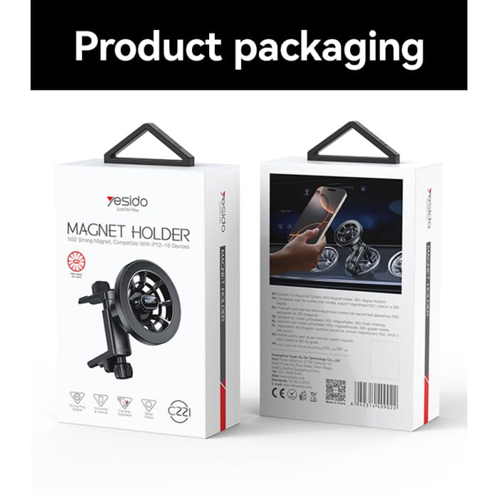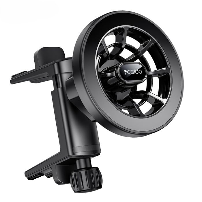 YESIDO - يسيدو حامل جوال مغناطيسي للسيارة C221 لفتحات التهوية المستديرة، حامل دوار 360 درجة عالي المتانة لسيارة مرسيدس بنز فئة C/E/GLA/GLC، متوافق مع ماج سيف - اسود