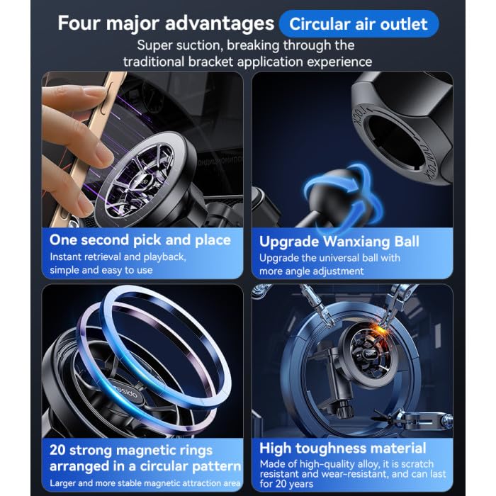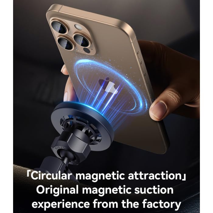 - حامل مغناطيسي قوي: قم بالقيادة بثقة. مزود بمجموعة قوية من مغناطيس N52 10x2، يخلق هذا الحامل قبضة قوية وآمنة تحافظ على ثبات هاتفك حتى على الطرق الوعرة (ماج سيف متوافق مع سلسلة ايفون 12-16).