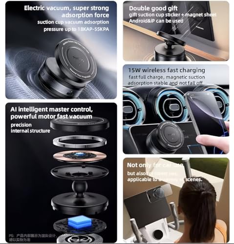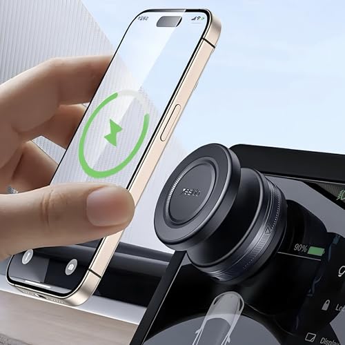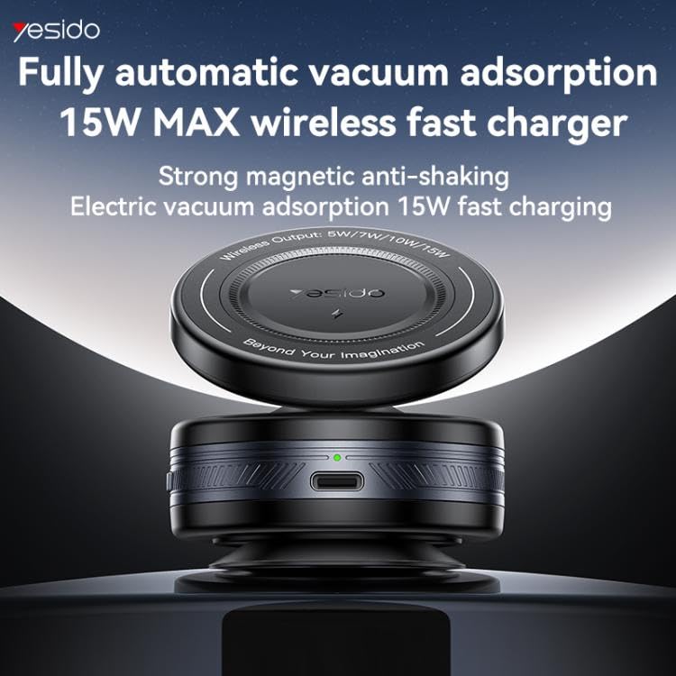 YESIDO - يسيدو شاحن سيارة لاسلكي مغناطيسي بقدرة 15 واط من سي 310، حامل موبايل بقاعدة شفط شفط مع مغناطيس قوي مضاد للاهتزاز، لوحة عدادات دوارة 360 درجة وحامل الزجاج الامامي لسلسلة ايفون 17/16