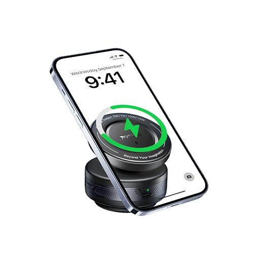 - شحن لاسلكي سريع 15 واط - يوفر شحنًا لاسلكيًا عالي السرعة متوافق مع ماج سيف حتى 15 واط، مما يوفر طاقة فعالة لسلسلة ايفون 17/16/15/14 وسلسلة سامسونج جالكسي اس 25/24/23 والهواتف الذكية التي تعمل بنظام اندرويد. (استخدم حلقة/لوحة معدنية للهواتف غير ماج سيف).